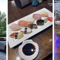 3 pieces sushi, 4 pieces sashimi and California roll.